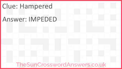 Hampered is a crossword clue for which we have 1 possible answer and we have spotted 2 times in our database. This crossword clue was last seen on 17 July 2022 in The Sun Coffee Time Crossword puzzle!
