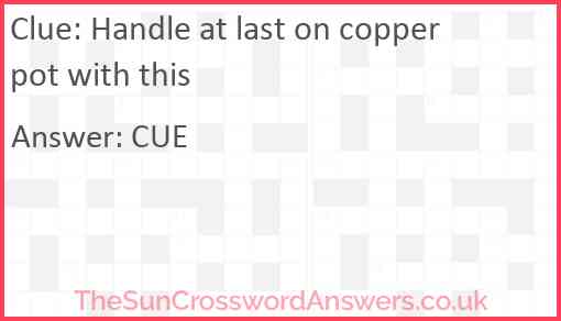 Handle at last on copper pot with this is a crossword clue for which we have 1 possible answer and we have spotted 2 times in our database. This crossword clue was last seen on 27 June 2024 in The Sun Cryptic Crossword puzzle!