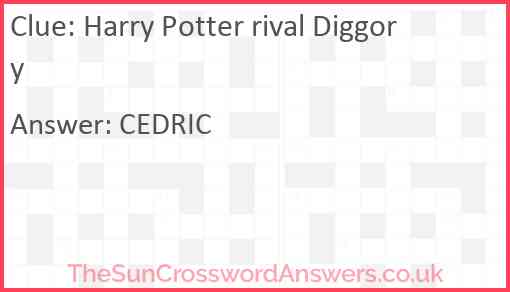 Harry Potter rival Diggory is a crossword clue for which we have 1 possible answer and we have spotted 1 times in our database. This crossword clue was last seen on 25 January 2024 in The Sun Coffee Time Crossword puzzle!