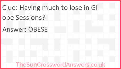 Having much to lose in Globe Sessions? is a crossword clue for which we have 1 possible answer and we have spotted 2 times in our database. This crossword clue was last seen on 15 February 2024 in The Sun Cryptic Crossword puzzle!