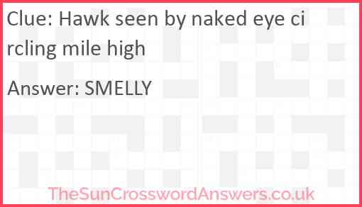 Hawk seen by naked eye circling mile high is a crossword clue for which we have 1 possible answer and we have spotted 1 times in our database. This crossword clue was last seen on 30 October 2024 in The Sun Cryptic Crossword puzzle!