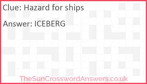 Hazard for ships is a crossword clue for which we have 1 possible answer and we have spotted 1 times in our database. This crossword clue was last seen on 05 February 2019 in The Sun Coffee Time Crossword puzzle!