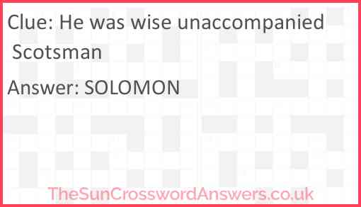 He was wise unaccompanied Scotsman is a crossword clue for which we have 1 possible answer and we have spotted 2 times in our database. This crossword clue was last seen on 26 June 2022 in The Sun Cryptic Crossword puzzle!