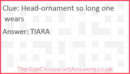 Head-ornament so long one wears is a crossword clue for which we have 1 possible answer and we have spotted 5 times in our database. This crossword clue was last seen on 23 January 2025 in The Sun Cryptic Crossword puzzle!