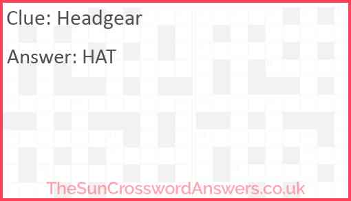 Headgear is a crossword clue for which we have 2 possible answer and we have spotted 9 times in our database. This crossword clue was last seen on 19 June 2025 in The Sun Coffee Time Crossword puzzle!