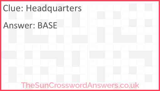 Headquarters is a crossword clue for which we have 1 possible answer and we have spotted 9 times in our database. This crossword clue was last seen on 12 July 2025 in The Sun Coffee Time Crossword puzzle!