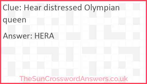 Hear distressed Olympian queen is a crossword clue for which we have 1 possible answer and we have spotted 1 times in our database. This crossword clue was last seen on 12 January 2025 in The Sun Cryptic Crossword puzzle!