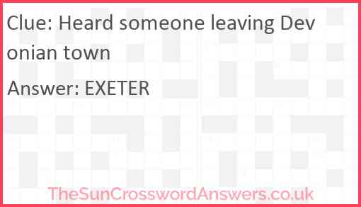 Heard someone leaving Devonian town is a crossword clue for which we have 1 possible answer and we have spotted 1 times in our database. This crossword clue was last seen on 28 December 2021 in The Sun Cryptic Crossword puzzle!