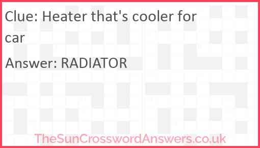 Heater that's cooler for car is a crossword clue for which we have 1 possible answer and we have spotted 4 times in our database. This crossword clue was last seen on 24 February 2024 in The Sun Cryptic Crossword puzzle!