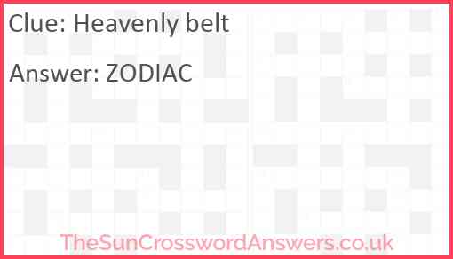 Heavenly belt is a crossword clue for which we have 1 possible answer and we have spotted 3 times in our database. This crossword clue was last seen on 15 October 2023 in The Sun Coffee Time Crossword puzzle!