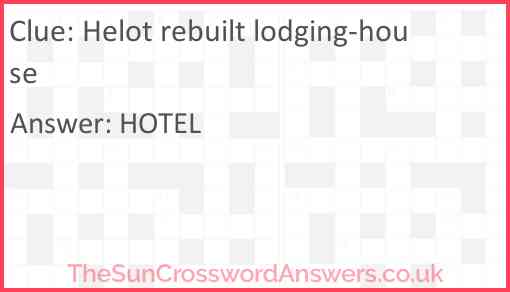 Helot rebuilt lodging-house is a crossword clue for which we have 1 possible answer and we have spotted 3 times in our database. This crossword clue was last seen on 23 April 2024 in The Sun Cryptic Crossword puzzle!