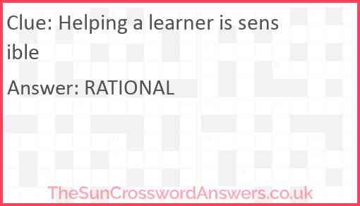 Helping a learner is sensible is a crossword clue for which we have 1 possible answer and we have spotted 2 times in our database. This crossword clue was last seen on 27 December 2022 in The Sun Cryptic Crossword puzzle!