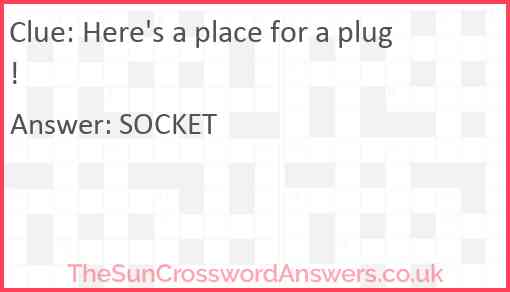 Here's a place for a plug! is a crossword clue for which we have 1 possible answer and we have spotted 1 times in our database. This crossword clue was last seen on 07 October 2024 in The Sun Cryptic Crossword puzzle!