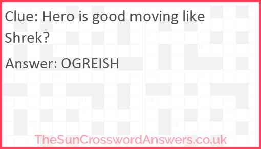 Hero is good moving like Shrek? is a crossword clue for which we have 1 possible answer and we have spotted 3 times in our database. This crossword clue was last seen on 23 January 2025 in The Sun Cryptic Crossword puzzle!