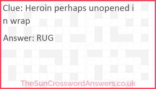 Heroin perhaps unopened in wrap is a crossword clue for which we have 1 possible answer and we have spotted 1 times in our database. This crossword clue was last seen on 21 March 2024 in The Sun Cryptic Crossword puzzle!