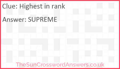Highest in rank is a crossword clue for which we have 1 possible answer and we have spotted 1 times in our database. This crossword clue was last seen on 15 May 2023 in The Sun Coffee Time Crossword puzzle!