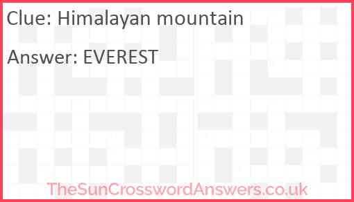 Himalayan mountain is a crossword clue for which we have 1 possible answer and we have spotted 8 times in our database. This crossword clue was last seen on 27 February 2025 in The Sun Coffee Time Crossword puzzle!