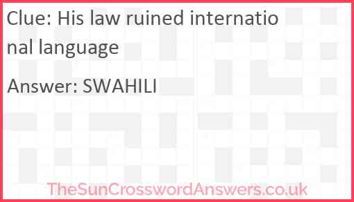 His law ruined international language is a crossword clue for which we have 1 possible answer and we have spotted 1 times in our database. This crossword clue was last seen on 20 October 2022 in The Sun Cryptic Crossword puzzle!