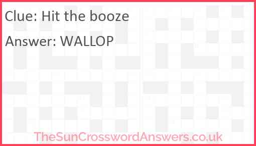 Hit the booze is a crossword clue for which we have 1 possible answer and we have spotted 4 times in our database. This crossword clue was last seen on 07 December 2024 in The Sun Cryptic Crossword puzzle!