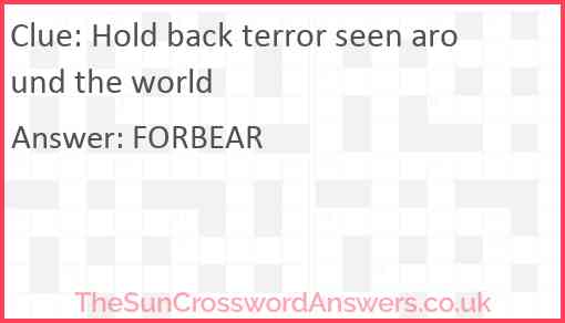Hold back terror seen around the world is a crossword clue for which we have 1 possible answer and we have spotted 2 times in our database. This crossword clue was last seen on 10 October 2024 in The Sun Cryptic Crossword puzzle!