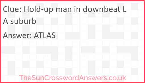 Hold-up man in downbeat LA suburb is a crossword clue for which we have 1 possible answer and we have spotted 1 times in our database. This crossword clue was last seen on 11 September 2022 in The Sun Cryptic Crossword puzzle!