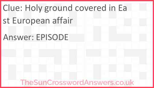 Holy ground covered in East European affair is a crossword clue for which we have 1 possible answer and we have spotted 3 times in our database. This crossword clue was last seen on 30 March 2024 in The Sun Cryptic Crossword puzzle!