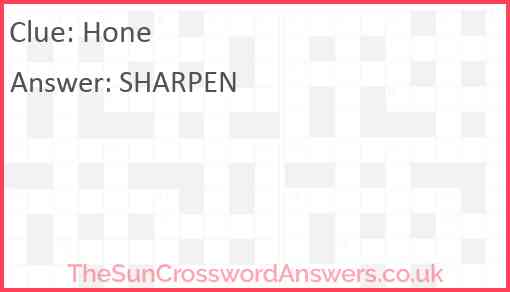 Hone is a crossword clue for which we have 1 possible answer and we have spotted 1 times in our database. This crossword clue was last seen on 05 September 2019 in The Sun Coffee Time Crossword puzzle!