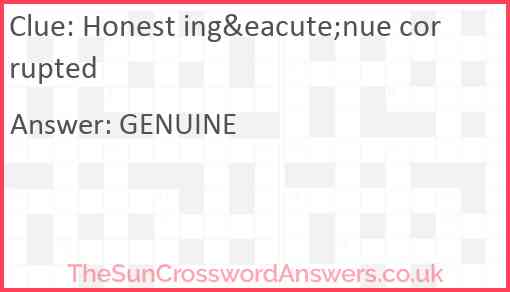 Honest ingénue corrupted is a crossword clue for which we have 1 possible answer and we have spotted 1 times in our database. This crossword clue was last seen on 14 January 2020 in The Sun Cryptic Crossword puzzle!