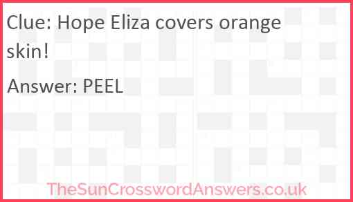 Hope Eliza covers orange skin! is a crossword clue for which we have 1 possible answer and we have spotted 2 times in our database. This crossword clue was last seen on 18 December 2022 in The Sun Cryptic Crossword puzzle!