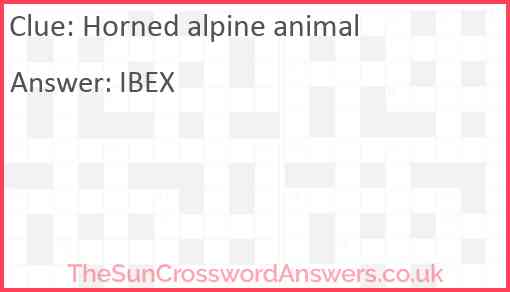 Horned alpine animal is a crossword clue for which we have 1 possible answer and we have spotted 1 times in our database. This crossword clue was last seen on 04 December 2024 in The Sun Coffee Time Crossword puzzle!