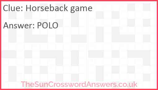 Horseback game is a crossword clue for which we have 1 possible answer and we have spotted 2 times in our database. This crossword clue was last seen on 29 January 2025 in The Sun Coffee Time Crossword puzzle!