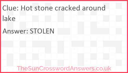 Hot stone cracked around lake is a crossword clue for which we have 1 possible answer and we have spotted 1 times in our database. This crossword clue was last seen on 19 May 2019 in The Sun Cryptic Crossword puzzle!
