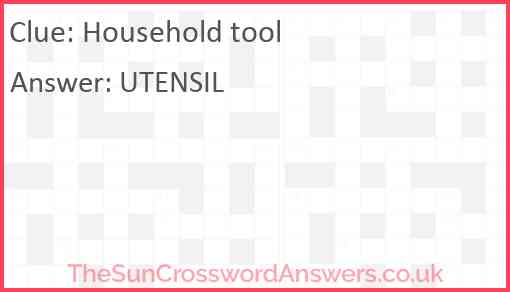 Household tool is a crossword clue for which we have 1 possible answer and we have spotted 5 times in our database. This crossword clue was last seen on 02 June 2024 in The Sun Coffee Time Crossword puzzle!
