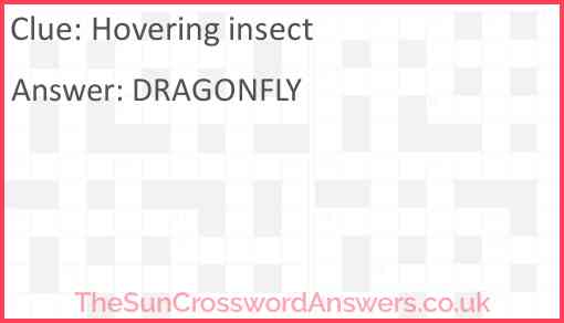 Hovering insect is a crossword clue for which we have 1 possible answer and we have spotted 2 times in our database. This crossword clue was last seen on 24 June 2022 in The Sun Coffee Time Crossword puzzle!