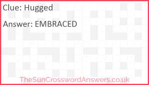 Hugged is a crossword clue for which we have 1 possible answer and we have spotted 3 times in our database. This crossword clue was last seen on 05 October 2022 in The Sun Coffee Time Crossword puzzle!