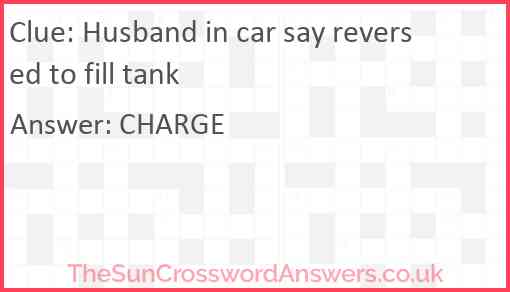 Husband in car say reversed to fill tank is a crossword clue for which we have 1 possible answer and we have spotted 3 times in our database. This crossword clue was last seen on 02 May 2024 in The Sun Cryptic Crossword puzzle!