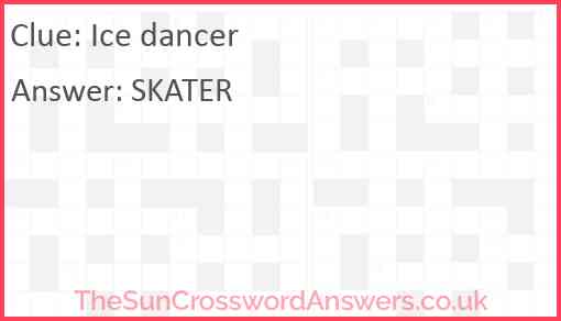 Ice dancer is a crossword clue for which we have 1 possible answer and we have spotted 4 times in our database. This crossword clue was last seen on 21 June 2025 in The Sun Coffee Time Crossword puzzle!