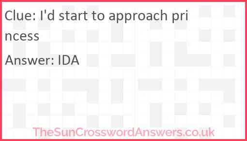 I'd start to approach princess is a crossword clue for which we have 1 possible answer and we have spotted 1 times in our database. This crossword clue was last seen on 10 May 2020 in The Sun Cryptic Crossword puzzle!