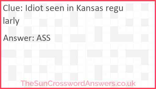 Idiot seen in Kansas regularly is a crossword clue for which we have 1 possible answer and we have spotted 3 times in our database. This crossword clue was last seen on 08 February 2023 in The Sun Cryptic Crossword puzzle!