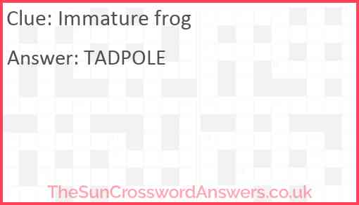 Immature frog is a crossword clue for which we have 1 possible answer and we have spotted 8 times in our database. This crossword clue was last seen on 27 July 2023 in The Sun Coffee Time Crossword puzzle!