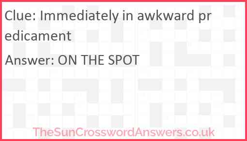 Immediately in awkward predicament is a crossword clue for which we have 2 possible answer and we have spotted 2 times in our database. This crossword clue was last seen on 10 May 2023 in The Sun Cryptic Crossword puzzle!