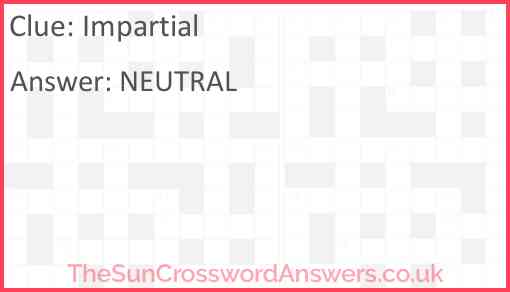 Impartial is a crossword clue for which we have 2 possible answer and we have spotted 28 times in our database. This crossword clue was last seen on 25 May 2025 in The Sun Coffee Time Crossword puzzle!