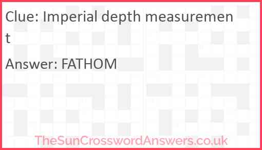 Imperial depth measurement is a crossword clue for which we have 1 possible answer and we have spotted 1 times in our database. This crossword clue was last seen on 05 August 2023 in The Sun Coffee Time Crossword puzzle!