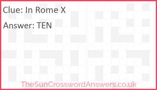 In Rome X is a crossword clue for which we have 1 possible answer and we have spotted 1 times in our database. This crossword clue was last seen on 07 December 2023 in The Sun Coffee Time Crossword puzzle!