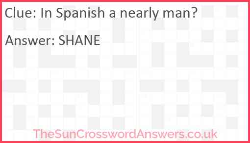 In Spanish a nearly man? is a crossword clue for which we have 1 possible answer and we have spotted 2 times in our database. This crossword clue was last seen on 02 August 2025 in The Sun Cryptic Crossword puzzle!