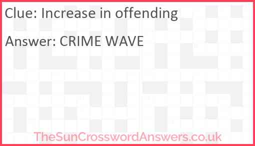 Increase in offending is a crossword clue for which we have 2 possible answer and we have spotted 2 times in our database. This crossword clue was last seen on 12 January 2024 in The Sun Coffee Time Crossword puzzle!