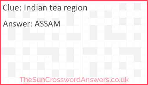 Indian tea region is a crossword clue for which we have 1 possible answer and we have spotted 3 times in our database. This crossword clue was last seen on 29 February 2024 in The Sun Coffee Time Crossword puzzle!