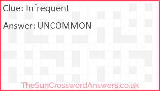 Infrequent is a crossword clue for which we have 1 possible answer and we have spotted 2 times in our database. This crossword clue was last seen on 03 June 2022 in The Sun Coffee Time Crossword puzzle!