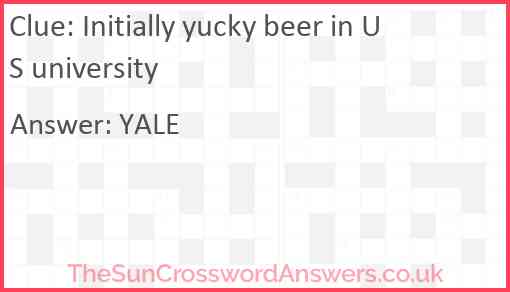 Initially yucky beer in US university is a crossword clue for which we have 1 possible answer and we have spotted 2 times in our database. This crossword clue was last seen on 10 October 2023 in The Sun Cryptic Crossword puzzle!