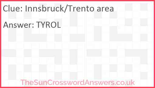 Innsbruck/Trento area is a crossword clue for which we have 1 possible answer and we have spotted 1 times in our database. This crossword clue was last seen on 27 February 2020 in The Sun Coffee Time Crossword puzzle!